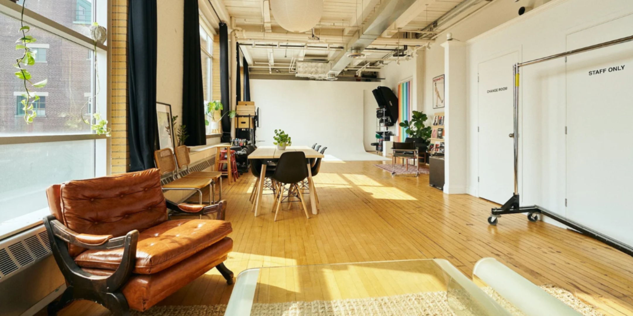 A bright, relaxed studio space in Liberty Village, designed for people to move around and talk comfortably.